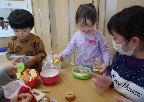 今日は、そんな2歳児さんがお店屋さんごっこをして楽しんでいました(^^)