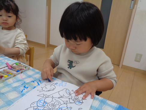 この日は、シール貼りと初めての塗り絵に挑戦しました☆